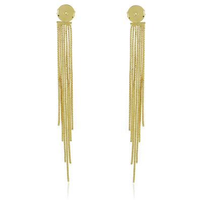 Acessório para brinco com 7 pedaços de corrente formando uma franja com muito balanço para colocar por trás de brinco (qualquer brinco que você quiser). O brinco precisa ter pino para usar o acessório. • Material: Peça feita com liga metálica e disponível nos banhos de ródio branco e de ouro amarelo 18k. Banho antialérgico e sem níquel na composição. • Design e Medidas: Medida do acessório 8,5cm e 0,8cm de largura.