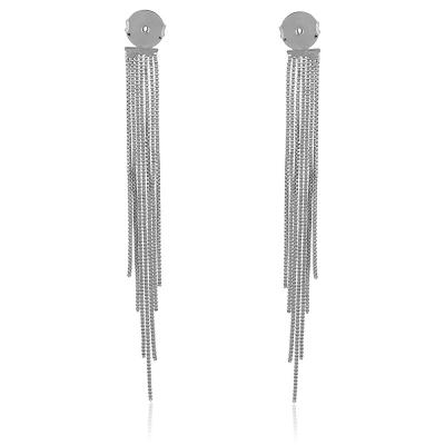 Acessório para brinco com 7 pedaços de corrente formando uma franja com muito balanço para colocar por trás de brinco (qualquer brinco que você quiser). O brinco precisa ter pino para usar o acessório. • Material: Peça feita com liga metálica e disponível nos banhos de ródio branco e de ouro amarelo 18k. Banho antialérgico e sem níquel na composição. • Design e Medidas: Medida do acessório 8,5cm e 0,8cm de largura.