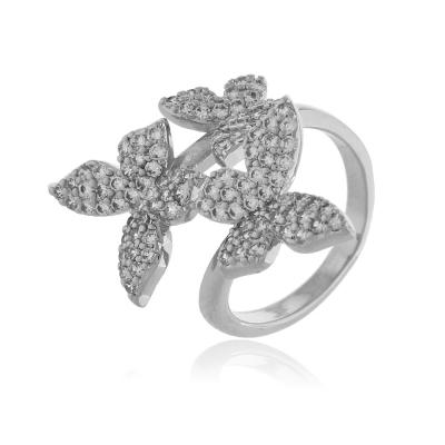 Anel ajustável com abertura frontal e 3 borboletas inteiras cravejadas de zircônias. • Material: Peça feita com liga metálica e disponível nos banhos de ródio branco e de ouro amarelo 18k. Banho antialérgico e sem níquel na composição. Pedra: Zircônia • Design e Medidas: Anel permite leve ajuste ao dedo com 3 borboletas cravejadas de aproximadamente 1,0cm de comprimento cada.