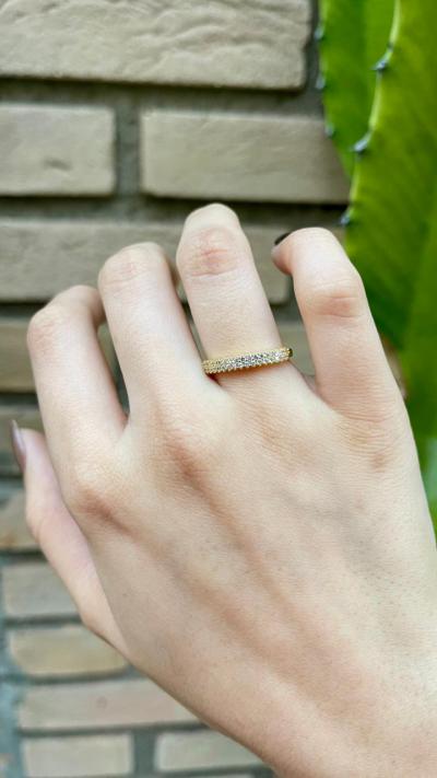 Anel Aparador Liandra com 2 fileiras cravejadas de zircônia na parte de cima do anel e banho de metais nobres. MODELO DOURADO -banho antialérgico de ouro amarelo 18K. MODELO PRATA -banho de ródio branco que é muito superior ao banho de prata.