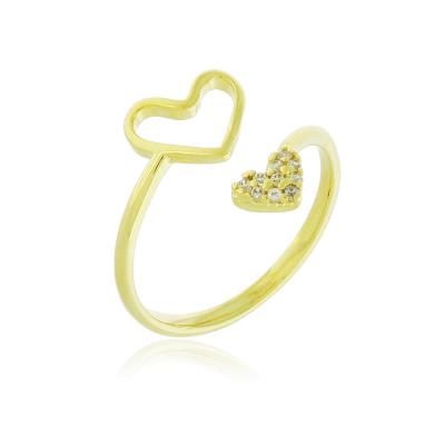 Anel Dois Corações sendo um menor e cravejado de zircônias e o maior liso e vazado com abertura na frente permitindo regular ao dedo com banho de metais nobres. MODELO DOURADO -banho antialérgico de ouro amarelo 18K. MODELO PRATA -banho de ródio branco que é muito superior ao banho de prata.