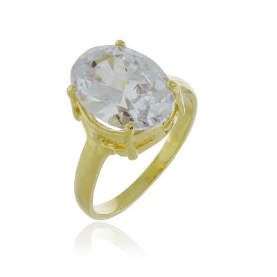 Anel solitário com pedra de zircônia oval com banho de metais nobres. A pedra mede 1,5cm de altura por 1,0cm de largura. MODELO DOURADO -banho antialérgico de ouro amarelo 18K. MODELO PRATA -banho de ródio branco que é muito superior ao banho de prata.