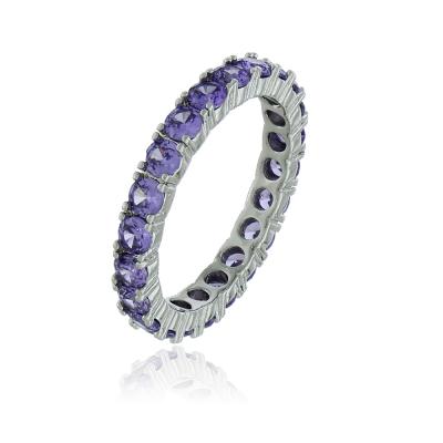 Anel Hailey Lavanda com toda volta da circunferencia de pedras na cor lavanda e banho de ródio branco.