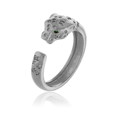Anel Pantera cravejado de zircônias brancas e olho com zitcônias verdes e banho de metais nobres. Anel ajustável pela frente atendendo do número 17 ao 22. MODELO DOURADO -banho antialérgico de ouro amarelo 18K. MODELO PRATA -banho de ródio branco que é muito superior ao banho de prata.
