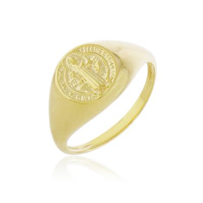 Anel São Bento com imagem do santo na frente e banho antialérgico de ouro 18k. DIâmetro de cima de 0,9cm.