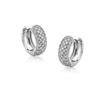 Brinco Argola de click com 5 fileiras de zircônias cravejadas na frente e banho de ródio branco que é muito superior ao banho de prata. Argola com 2,0cm de diâmetro.