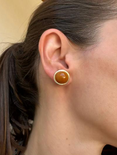 Brinco Botão Resina Dourado Marrom