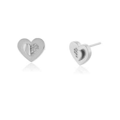 Brinco Dualidade no formato de coração com um coração no meio como se fosse meio aberto e a parte da metade que abriu toda cravejada de zircônias e banho de metais nobres. Brinco mede 1,0cm de altura pode 1,3cm de largura. MODELO DOURADO -banho antialérgico de ouro amarelo 18K. MODELO PRATA -banho de ródio branco que é muito superior ao banho de prata.