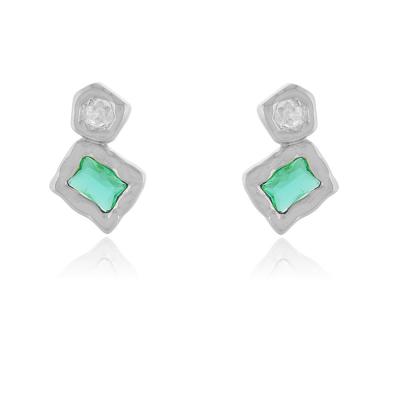Brinco Duplo Organico com duas ´pedras, uma pedra verde retangular e outra na cor cristal com banho de metais nobres. Brinco mede 2,0cm de altura por 1,3cm de largura. MODELO DOURADO -banho antialérgico de ouro amarelo 18K. MODELO PRATA -banho de ródio branco que é muito superior ao banho de prata.