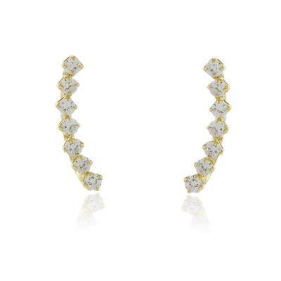 Brinco estilo Ear Cuff (que sobe na orelha) com 7 zircônias. • Material: Peça feita com liga metálica e disponível nos banhos de ródio branco e de ouro amarelo 18k. Banho antialérgico e sem níquel na composição. • Design e Medidas: Medida do brinco: 2,0cm de altura. Zircônia de 2mm cada.