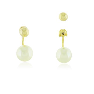 Brinco E. Jacket onde o brinco da frente tem o pino (nesse caso a bolinha lisa menor) e a parte de trás vem com a tarraxa que é o gancho de pérola com banho antialérgico de ouro amarelo 18K. Brinco mede 1,7cm de altura e a bolinha mede 5m de diâmetro e a pérola 1,0cm de diâmetro.