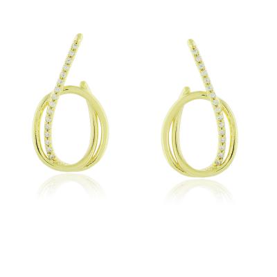 Brinco Elo Eterno com traço cravejado de zircônias e volta lisa com banho de metais nobres. Brinco mede 2,3cm de altura por 1,4cm de largura. MODELO DOURADO -banho antialérgico de ouro amarelo 18K. MODELO PRATA -banho de ródio branco que é muito superior ao banho de prata.