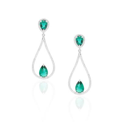 Brinco Festa Gota Verde toda vazada com cravação de zircônia (branca ou negra) em toda volta e banho de metais nobres (ródio branco e rodio negro). Brinco mede 5,5cm de altura e 2,1cm de largura.