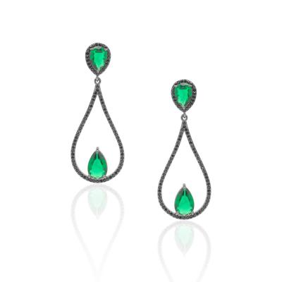 Brinco Festa Gota Verde toda vazada com cravação de zircônia (branca ou negra) em toda volta e banho de metais nobres (ródio branco e rodio negro). Brinco mede 5,5cm de altura e 2,1cm de largura.