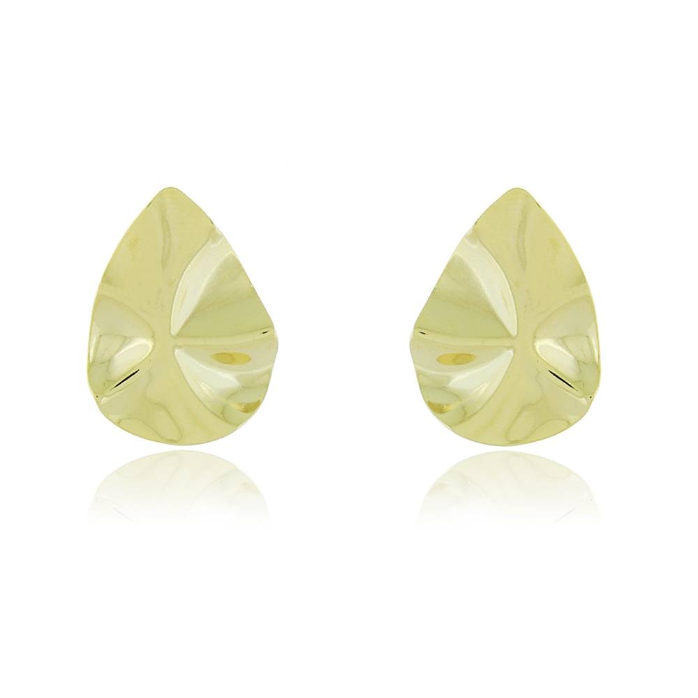 Brinco Gota Martelado que preenche o lobulo da orelha com banho de metais nobres. Brinco mede 2,7cm de altura por 2,0cm de largura. MODELO DOURADO -banho antialérgico de ouro amarelo 18K. MODELO PRATA -banho de ródio branco que é muito superior ao banho de prata.