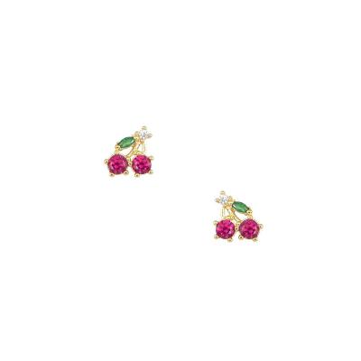 Brinco Infantil Cerejinha com pedrinhas coloridas (vermelha, verde e cristal) e banho antialérgico de ouro 18k. Brinco mede 8mm de altura e 8m de largura.