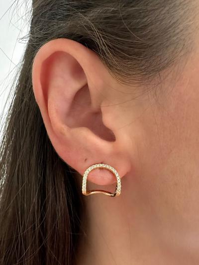 Brinco Meia Lua Gancho todo cravejado na fileira e banho de ouro amarelo 18k e ródio branco.