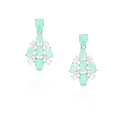 Brinco com várias pedras nas cores azul e turmalina (verde claro) e também com zircônias brancas no modelo turmalina e banho de ródio branco. Brinco mede 2,7cm de altura por 1,3cm de largura MODELO DOURADO -banho antialérgico de ouro amarelo 18K. MODELO PRATA -banho de ródio branco que é muito superior ao banho de prata.