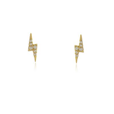 Brinco estilo minimalista em formato de raio todo cravejado com micro zircônias e banho de metais nobres. Brinco mede 11mm de altura e 3mm de largura. MODELO DOURADO -banho antialérgico de ouro amarelo 18K. MODELO PRATA -banho de ródio branco que é muito superior ao banho de prata.