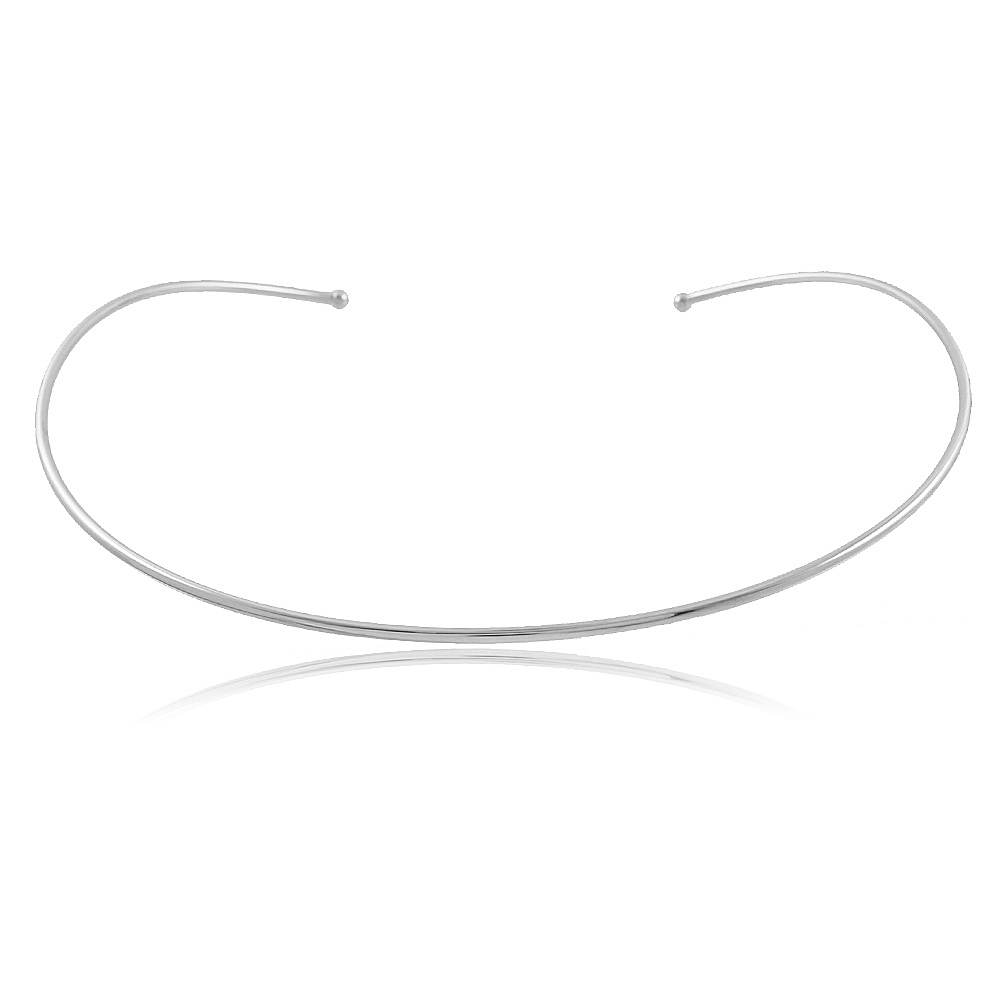 Choker Giovanelli com aro durinho e aberto para se ajustar ao pescoço com banho de metais nobres. Aro mede 12,5cm de diâmetro. MODELO DOURADO -banho antialérgico de ouro amarelo 18K. MODELO PRATA -banho de ródio branco que é muito superior ao banho de prata.