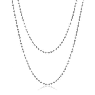 Colar Thassia com micro quadradinhos 3D na extensão toda com banho de metais nobres. Colar mede 1metro de comprimento e 8cm de extensor. Pode-se dar 2 ou dependendo do pescoço até 3 voltas com ele. MODELO DOURADO -banho antialérgico de ouro amarelo 18K. MODELO PRATA -banho de ródio branco que é muito superior ao banho de prata.