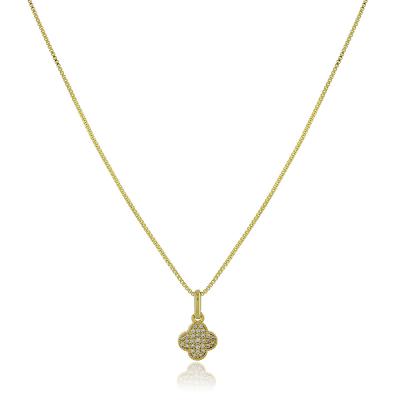 Colar Isabele P com pingente de trevinho todo cravejado de zircônias brancas e banho de metais nobres. Corrente tipo veneziana medindo 45cm de comprimento mais 5cm de extensor. MODELO DOURADO -banho antialérgico de ouro amarelo 18K. MODELO PRATA -banho de ródio branco que é muito superior ao banho de prata.