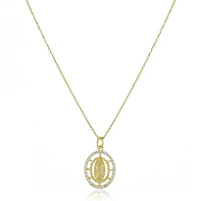 Colar com imagem de Nossa Senhora de Fátima com zircônias cravejadas na volta e banho de metais nobres. Corrente tipo veneziana medindo 45cm de comprimento total e 5cm de extensor e pingente oval medindo 1,8cm de altura por 1,5cm de largura. MODELO DOURADO -banho antialérgico de ouro amarelo 18K. MODELO PRATA -banho de ródio branco que é muito superior ao banho de prata.