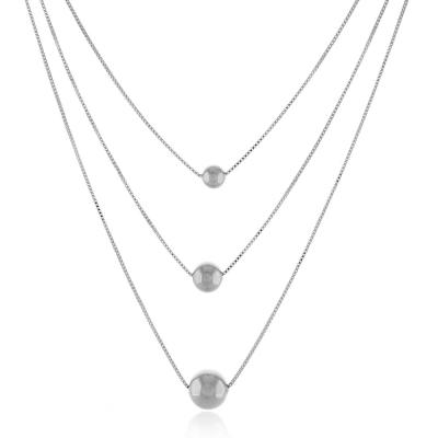 Colar Triplo Bárbara são 3 correntes venezianas juntas em alturas diferentes com uma bola de tamanhos diferentes na ponta de cada corrente e banho de metais nobres. Corrente menor com 37cm de comprimento e bola de 5mm de diâmetro. Corrente do meio com 40cm de comprimento e bola de 7mm de diâmetro. Corrente maior com 46cm de comprimento e bola de 10mm de diâmetro. Essa corrente tripla tem mais 6cm de extensor. MODELO DOURADO -banho antialérgico de ouro amarelo 18K. MODELO PRATA -banho de ródio branco que é muito superior ao banho de prata.