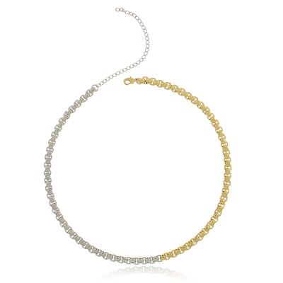Corrente Nathy sendo metade na cor prateada e metade na cor dourada OU inteira dourada com banho flash da nossa linha de Bijuteria Fina. Colar mede 42cm de comprimento mais 2cm de extensor.