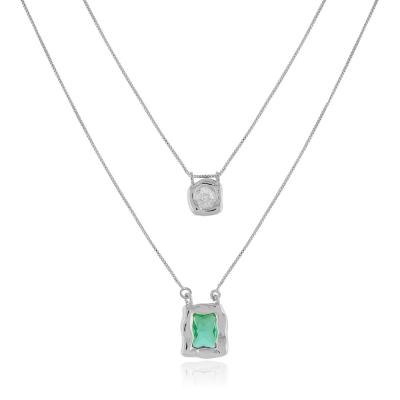 Escapulario Duplo Organico com dois lados sendo um lado fixo com uma pedra verde retangular e outro lado maleável que pode ser usado as duas pedras de frente na cor cristal com banho de metais nobres. Colar mede 62cm de comprimento total sem fecho com pedras medindo 1,1cm por 1,0cm a maior e 0,7cm de cada lado a menor. MODELO DOURADO -banho antialérgico de ouro amarelo 18K. MODELO PRATA -banho de ródio branco que é muito superior ao banho de prata.