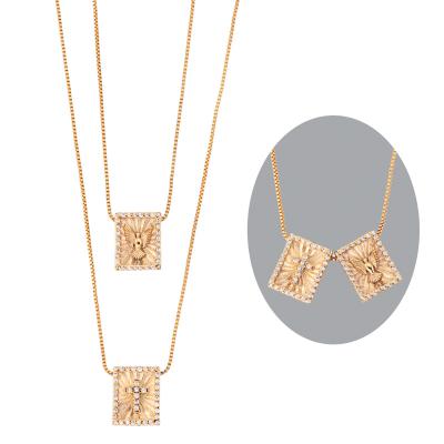 Escapulário com imagem de Espirito Santo de um lado e uma cruz do outro sendo que as duas imagens "andam" pelo colar podendo ser usadas como um escapulário tradicional ou as duas pra frente e banho de metais nobres. Colar mede 60cm de comprimento e cada imagem mede 0,9cm de altura por 0,7cm de largura. MODELO DOURADO -banho antialérgico de ouro amarelo 18K. MODELO PRATA -banho de ródio branco que é muito superior ao banho de prata.
