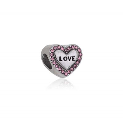 Furloque Separador Coração Love com zirconia rosa na volta feita em aço inoxidável que não fica preta. Esse "furloque" serve em todas pulseiras desse modelo (tipo life e pandora).