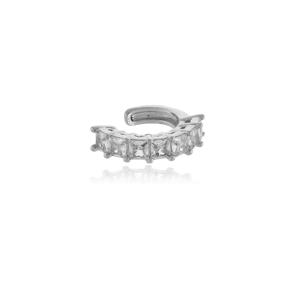 Piercing Hailey P com 7 pedras de zircônia quadrada de 2mm cada e circunferência do piercing de 1,0cm de diâmetro. As pedras ficam na parte da frente da orelha e o brilho é surreal. MODELO DOURADO -banho antialérgico de ouro amarelo 18K. MODELO PRATA -banho de ródio branco que é muito superior ao banho de prata.