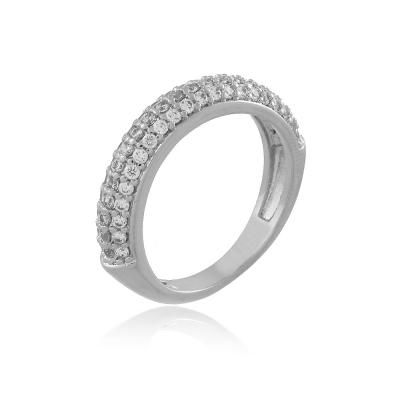 Anel tipo aparador com 3 fileiras de zircônias cravejadas na parte da frente com banho de metais nobres.