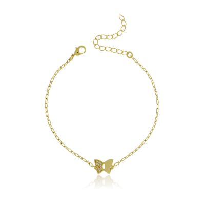 Pulseira Borboleta metade lisa e metade cravejada de zircônias com banho de metais nobres. Pulseira de elinhos medindo 19cm de comprimento já contando com a borboleta que tem 1,2cm. Ainda tem mais 5cm de extensão MODELO DOURADO -banho antialérgico de ouro amarelo 18K. MODELO PRATA -banho de ródio branco que é muito superior ao banho de prata.