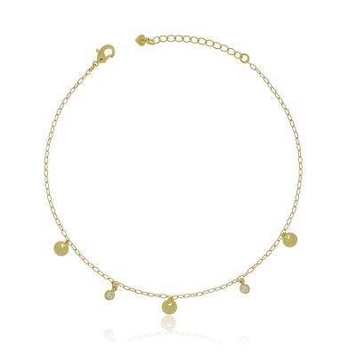 Tornozeleira Melissa com 3 pingentes de medalhinhas lisas e 2 pontos de luz com banho de metais nobres. Corrente de elo português medindo 24cm com mais 4cm de extensor. MODELO DOURADO -banho antialérgico de ouro amarelo 18K. MODELO PRATA -banho de ródio branco que é muito superior ao banho de prata.