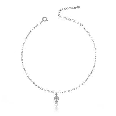 Tornozeleira com pingente de Sardinha com mini zircônias cravejadas e banho de metais nobres. Corrente de elo português medindo 24cm com mais 6cm de extensor. MODELO DOURADO -banho antialérgico de ouro amarelo 18K. MODELO PRATA -banho de ródio branco que é muito superior ao banho de prata.